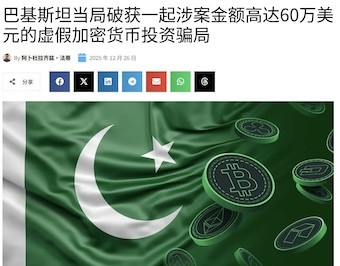 巴基斯坦警方捣毁涉加密投资诈骗团伙,涉案金额约 6000 万美元!