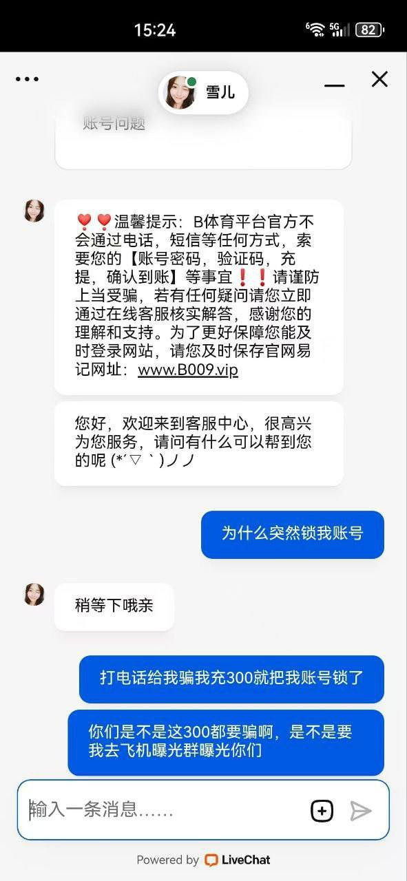 B体育黑平台 电话忽悠充值送彩金,下注几把就封号,钱直接吞了跑路